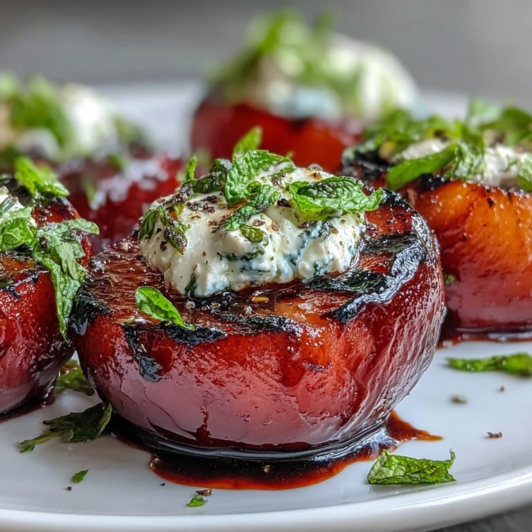 Save There's a particular magic to catching fruit at the exact moment between raw and charred, when the heat has just begun to coax out its natural sugars without destroying what made it fresh to begin with. I discovered these grilled plums on a late summer evening when a dinner guest mentioned she couldn't eat heavy desserts, and I found myself standing at the grill with four perfect plums, some goat cheese, and the kind of creative panic that sometimes leads to something genuinely lovely. The combination seemed almost absurdly simple until that first bite, when the warm fruit, cool cheese, and tangy glaze created something that felt far more sophisticated than the ten minutes it took to make.