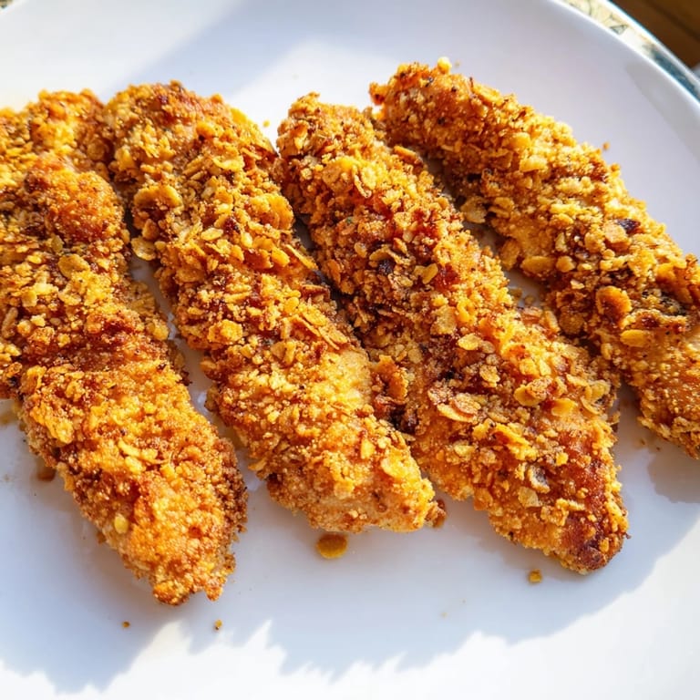 Save My son came home from school asking why his chicken tenders couldn't taste like the snack aisle, and honestly, it made me laugh out loud. That ridiculous question led me to raid the pantry for onion-flavored chips and cheese crisps, and what followed was one of those happy kitchen accidents that actually worked. The first batch emerged from the oven crackling and golden, and watching his face light up felt like winning the lottery. Now this is the only chicken tender recipe anyone in our house will eat, and I've stopped trying to explain why crushed chips are somehow genius.