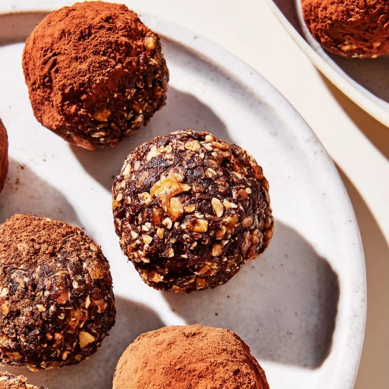 Save Rich, naturally sweet truffles featuring dates, toasted walnuts, and a dusting of cocoa powder. They are perfect for a healthy treat or gift and offer a simple, rewarding dessert experience.