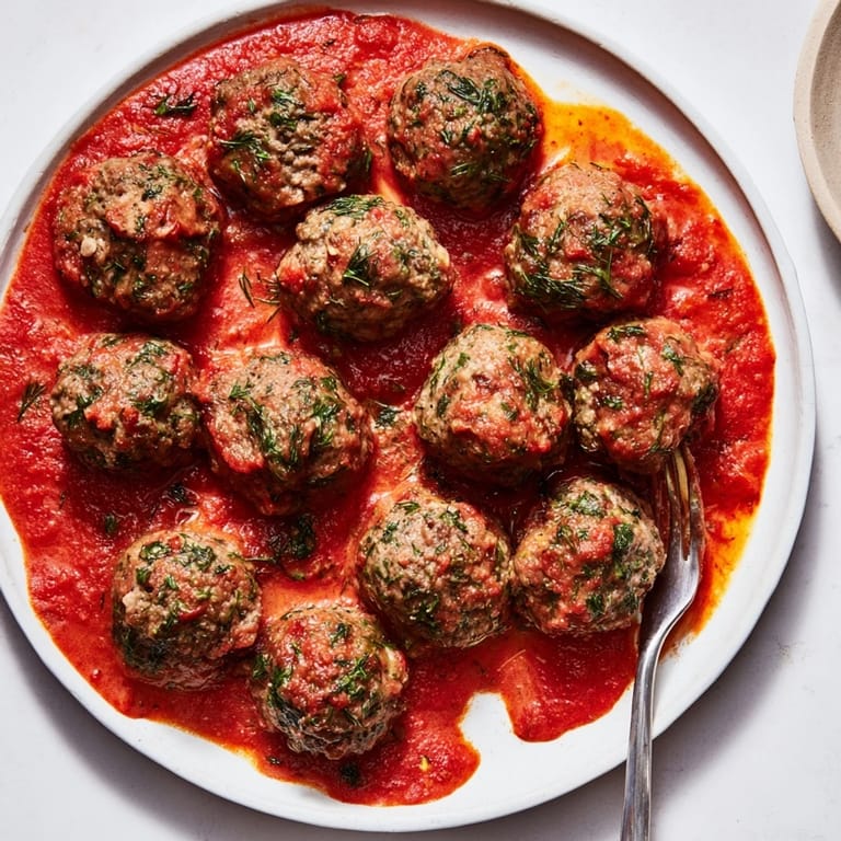 Save Juicy, herbed meatballs simmered in a savory tomato base, topped with a creamy lemon-feta sauce—an easy weeknight dinner bursting with Mediterranean flavor.