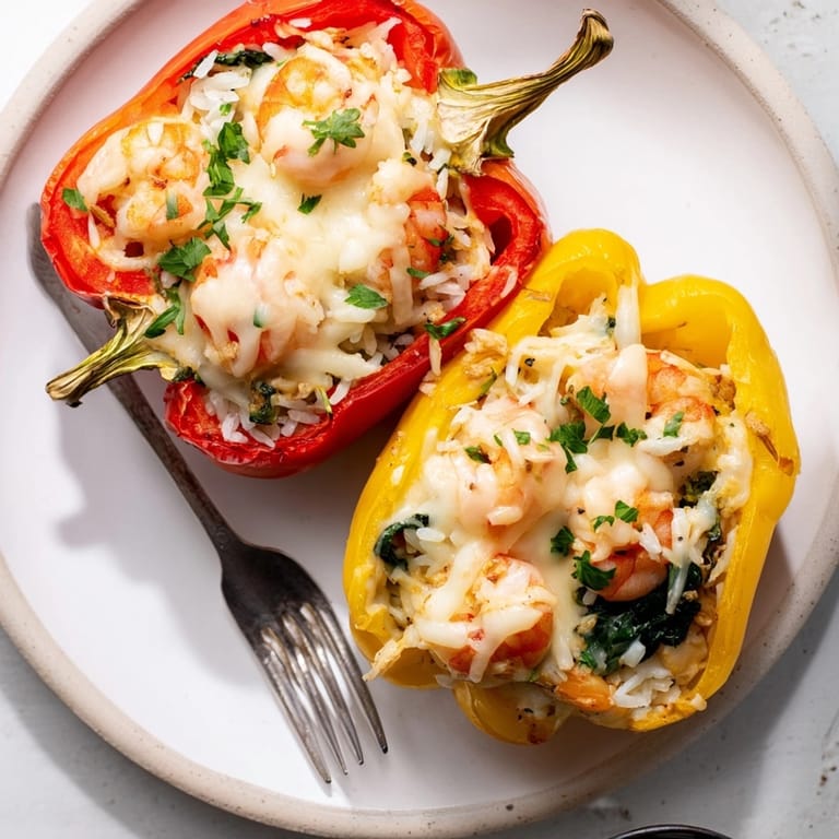 Save Juicy bell peppers make the perfect vessel for a creamy shrimp Alfredo filling in this family favorite. With every bite you get savory shrimp, melty cheese, tender spinach and a rich homemade Alfredo sauce all tucked inside a sweet roasted pepper.