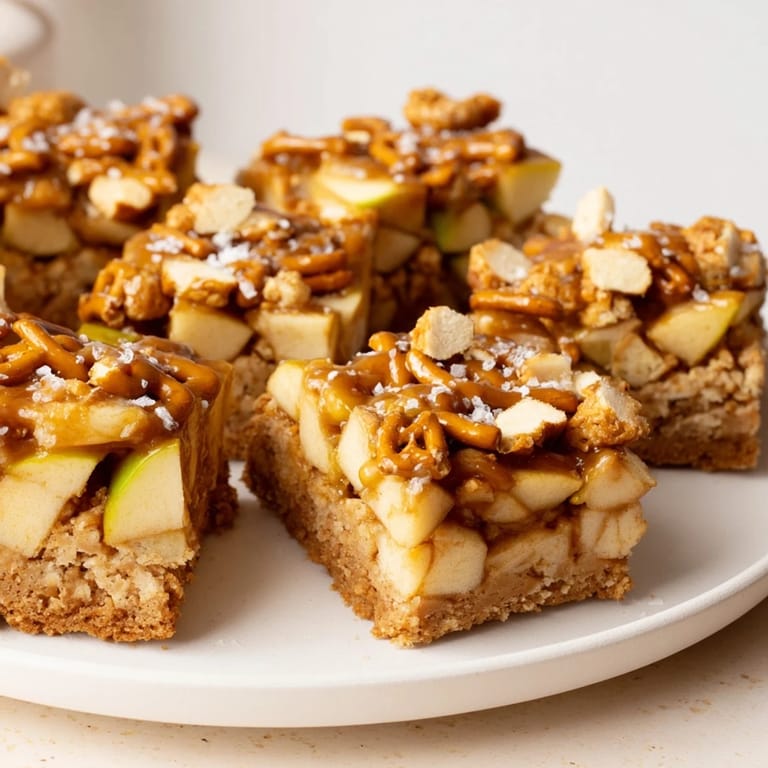 Save A decadent treat featuring layers of crisp spiced apples, buttery biscuit base, crunchy pretzels, and gooey caramel. Perfect for autumn gatherings or as a festive snack for anyone craving a sweet and spicy twist.