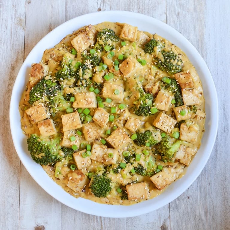 Save A vibrant, plant-based casserole blending crispy tofu and roasted broccoli in a creamy, cheesy sauce with an umami-rich sesame-ginger twist.