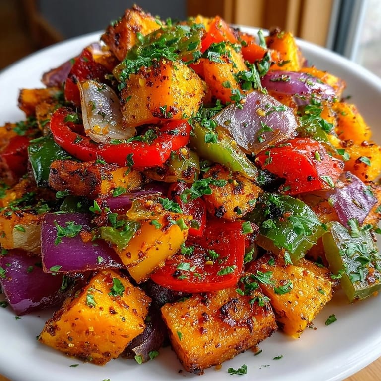 Enjoy a delightful blend of caramelized sweet potatoes, aromatic cinnamon, and colorful bell peppers in this easy-to-make hash. Cooked gently to golden perfection and finished with fresh parsley, it offers a balance of sweet, savory, and smoky notes. Serve it warm for breakfast, as a versatile side, or even topped with a fried egg for extra richness. Naturally vegetarian and gluten-free, it's a nourishing choice for any meal.