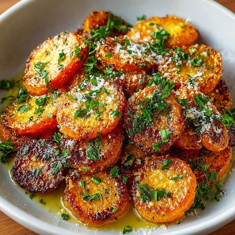 Savor golden, crispy carrots with a burst of garlic and paprika. Boiling the carrots first ensures a soft interior, while smashing and roasting creates deliciously crunchy edges. Olive oil, parmesan, and fresh parsley add richness and brightness. A simple yet impressive side, perfect for bringing out the natural sweetness and flavor of carrots in every bite.
