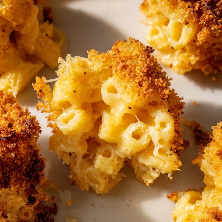 Save Bite-sized, crispy mac and cheese treats featuring creamy cheese sauce and tender ditalini pasta, perfect for parties or snacking.