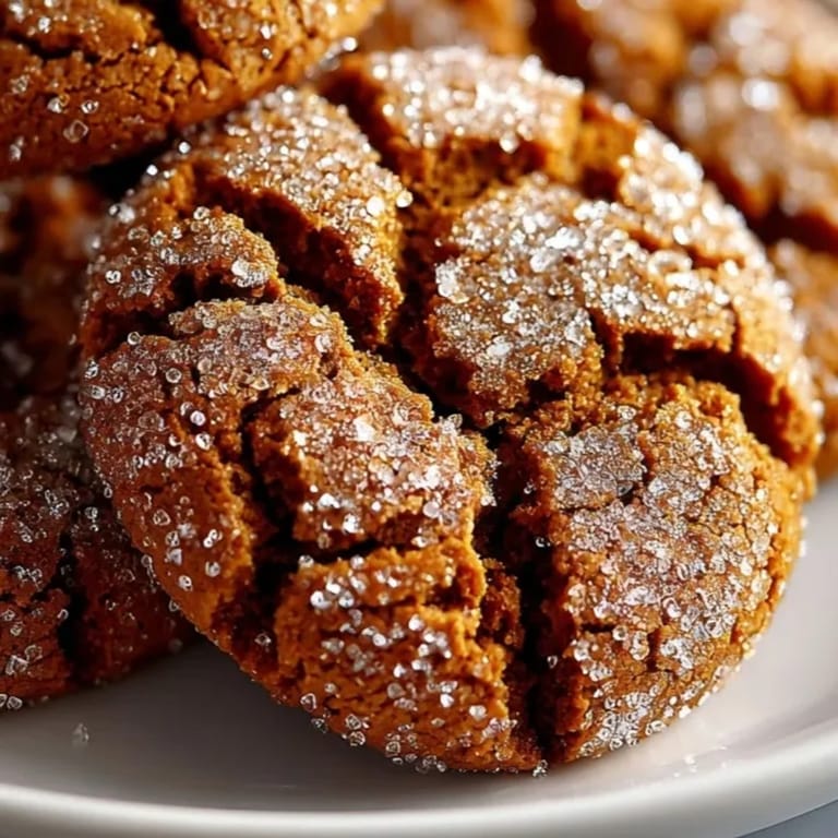 Soft and chewy Ginger Molasses Crinkle Cookies deliver old-fashioned comfort with every bite. Laced with warming ginger, cinnamon, and a hint of cloves, their flavor is richened by dark molasses. Each dough ball is rolled in sugar, creating a beautiful, sparkling crust outside and classic crackled tops. Fast to prepare and simple to bake, these treats are perfect for sharing or enjoying with a cup of tea. Aromatic spices and a signature crinkle make each bite memorable.