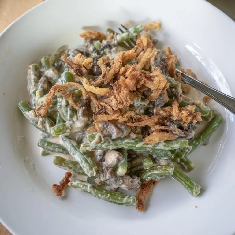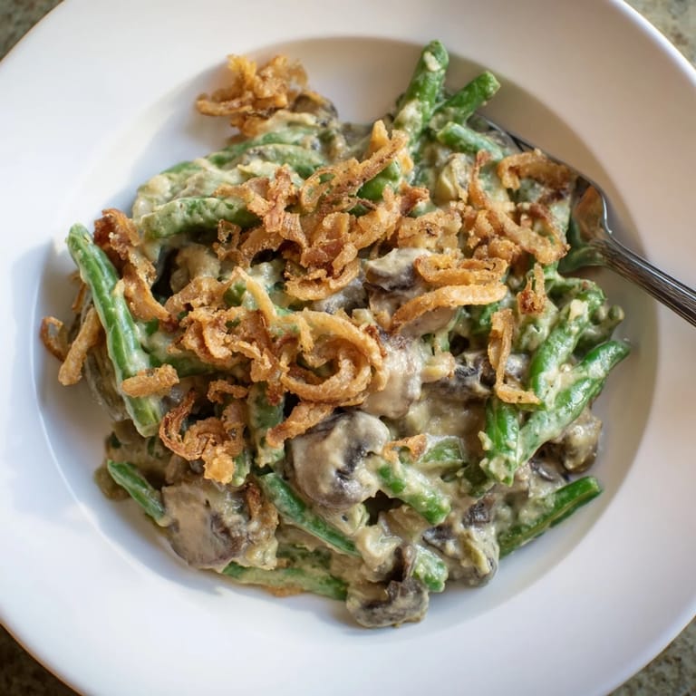 For extra richness, try adding 50 g of grated sharp cheddar or Gruyère cheese to the sauce before baking. This addition deepens the flavor and melts beautifully into the creamy base. Also, the green beans can be blanched fresh or replaced with thawed frozen beans for convenience without compromising taste.