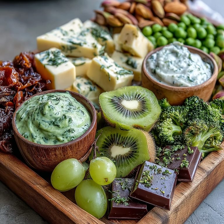 The beauty of a board like this is that it's not locked into any particular tradition or rule. You can swap in whatever green foods you love or have on hand—add dragon fruit if that appeals to you, throw in green mango slices, use whatever cheeses are calling your name. I've made versions with herbs mixed into the dips, added edible flowers for extra flair, and even included green hard candies for people who wanted something sweet but not chocolate.
