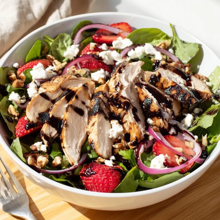 Save One June afternoon, I threw together what I thought would be a quick lunch salad and ended up with something I craved all summer long. The strawberries were almost too ripe, the feta was leftover from a cheese board, and I had chicken that needed using. I drizzled on some balsamic I'd reduced too much by accident, and it clung to everything like candy. That happy accident became my most requested dish.